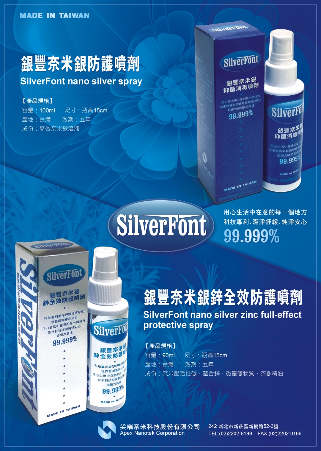 尖端奈米科技股份有限公司於 2003 年在台北市成立,申請到台北市第一家製造奈米材料的工廠登記證。 公司技術團隊由來自奈米材料專家組成,長期致力研發高品質專利活性碳產品及水和空氣淨化材料,利用抑菌專業,歷經十年努力精心研發,獨創奈米銀結晶載入專利技術,獨步全球,領先同業。 持續不斷的推動淨水行業的科技進步,確保任何人都有安全抑菌的高品質飲用水,為廣大消費者保障健康安全。 尖端奈米科技公司的銀泉淨水產品受到知名媒體的廣泛報導和讚許,亞太新唐人電視台和蘋果日報對我們進行了專題報導。運用我們獨特的技術優勢及領先的研發能力,提供了創新和持續性的研發能力,所持有的獨特技術,使抑菌、淨水、空氣達到更高品質的現實需求。